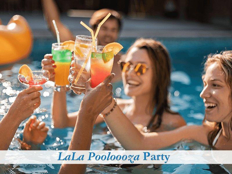 Soak up the last days of summer with our LaLa Pooloooza Party . Whether you're here with friends, your special someone, or the whole family, this is your chance to kick back, dive in, and enjoy a full lineup of fun.