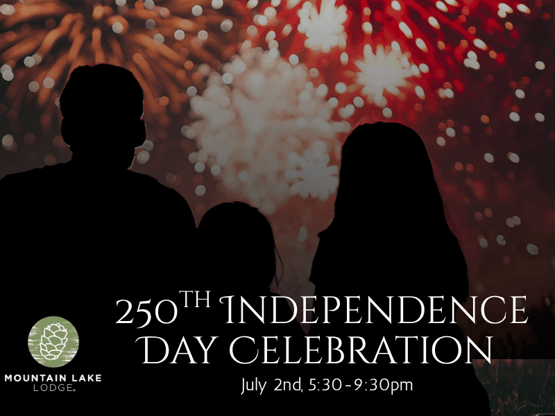 Celebrate the Fourth of July at Mountain Lake Lodge and be part of America’s 250th Birthday in truly memorable fashion. Enjoy crisp mountain air, peaceful nature walks, and cozy moments at the lodge while taking in the spirit and significance of this historic holiday. Whether you’re gathering with loved ones for a relaxed getaway or embracing the festive energy of the celebration, it’s an ideal time to connect, unwind, and honor a milestone summer tradition.