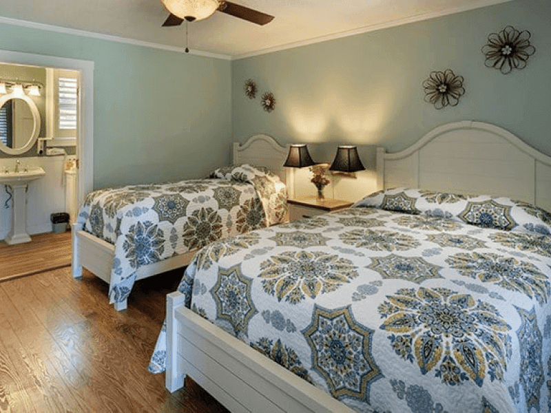 This recently renovated unit is a two-bedroom cottage with queen-sized beds, a private bathroom in each bedroom, and a sleeper sofa. The cottage comes with a natural gas fireplace and a new kitchen with modern conveniences.